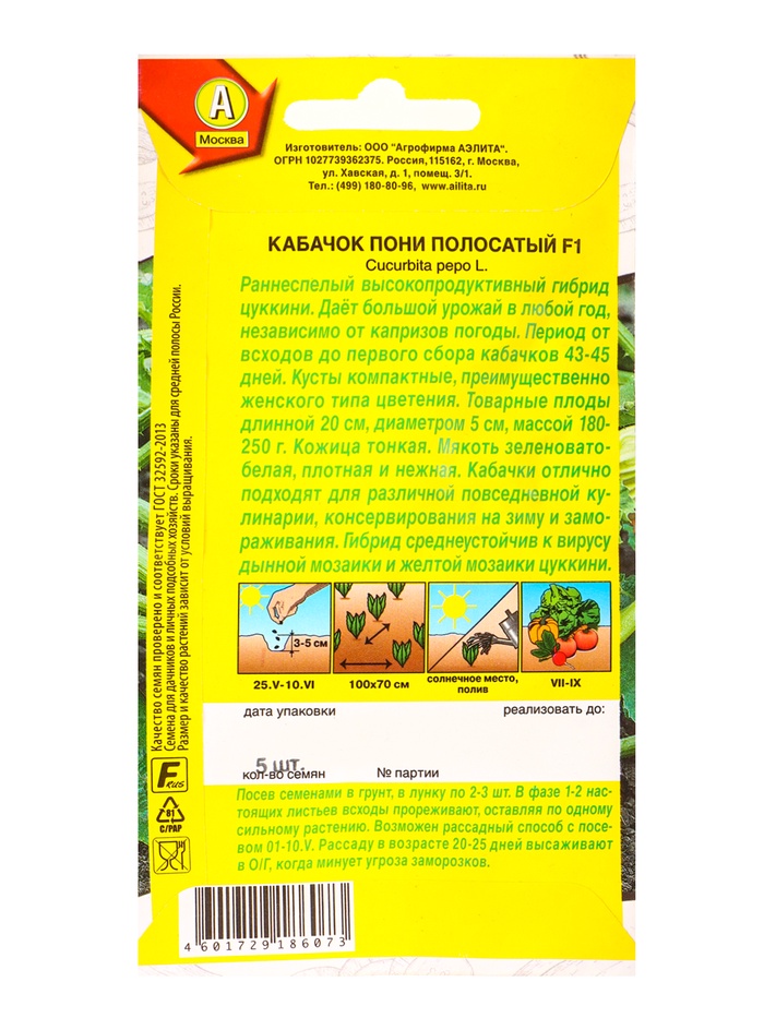 Семена Кабачок цуккини «Пони полосатый», F1, «Мир высокого урожая - Агрофирма АЭЛИТА», 5 шт.