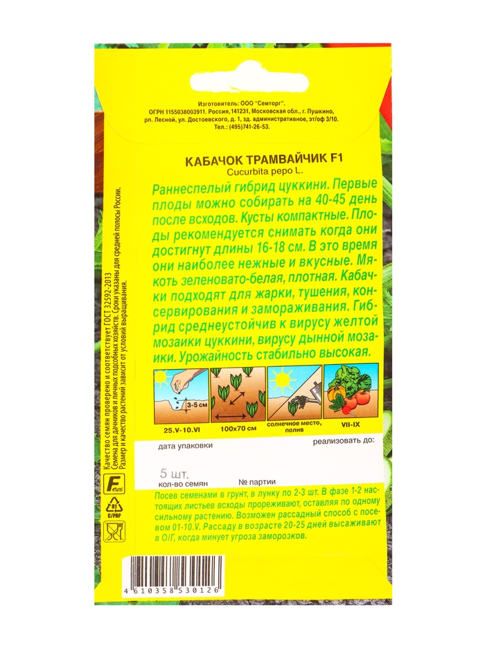 Семена Кабачок цуккини «Трамвайчик», F1, «Семторг - Агрофирма АЭЛИТА», 5 шт.