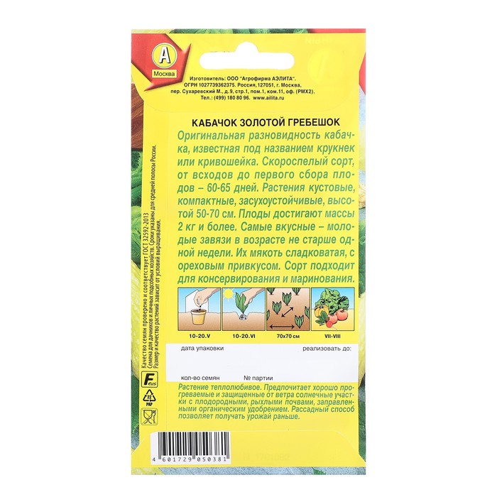 Семена Кабачок цукини «Золотой гребешок», 1 г, скороспелый, «Аэлита»