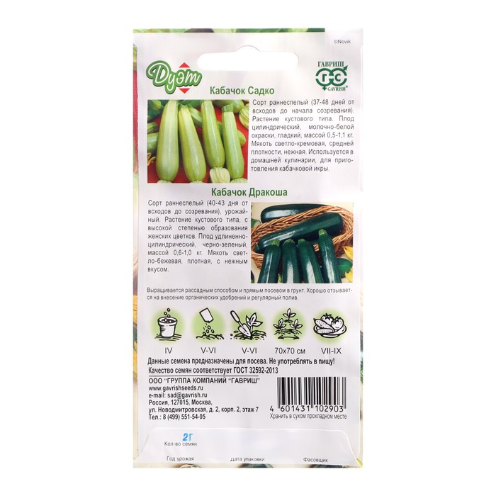 Семена Кабачок «Дракоша» 1.0 г + «Садко» 1.0 г, «Гавриш серия Дуэт»