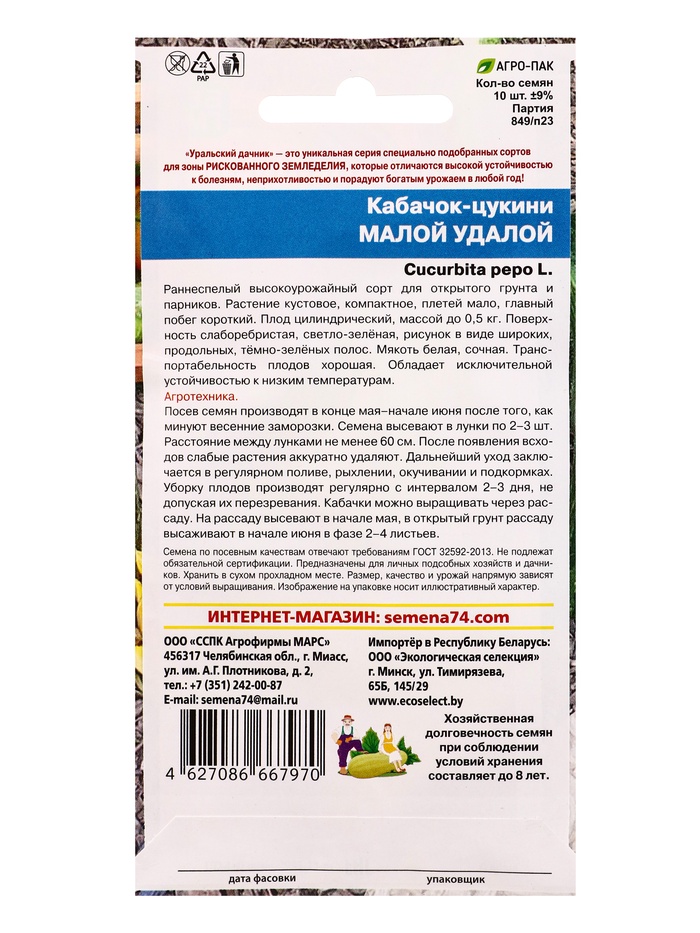 Семена Кабачок «Малой-Удалой» цуккини, 2 г, «Уральский дачник»