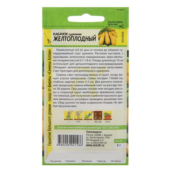 Семена Кабачок "Желтоплодный-Цуккини", 2 г