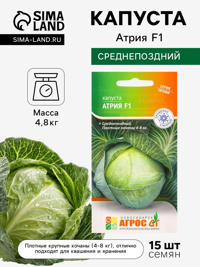 Семена Капуста «Атрия», F1, 15 шт., «Агросс»