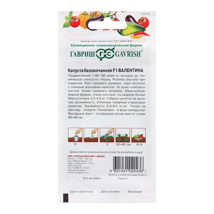 Семена Капуста белокочанная «Валентина», F1, «Гавриш», 10 шт.