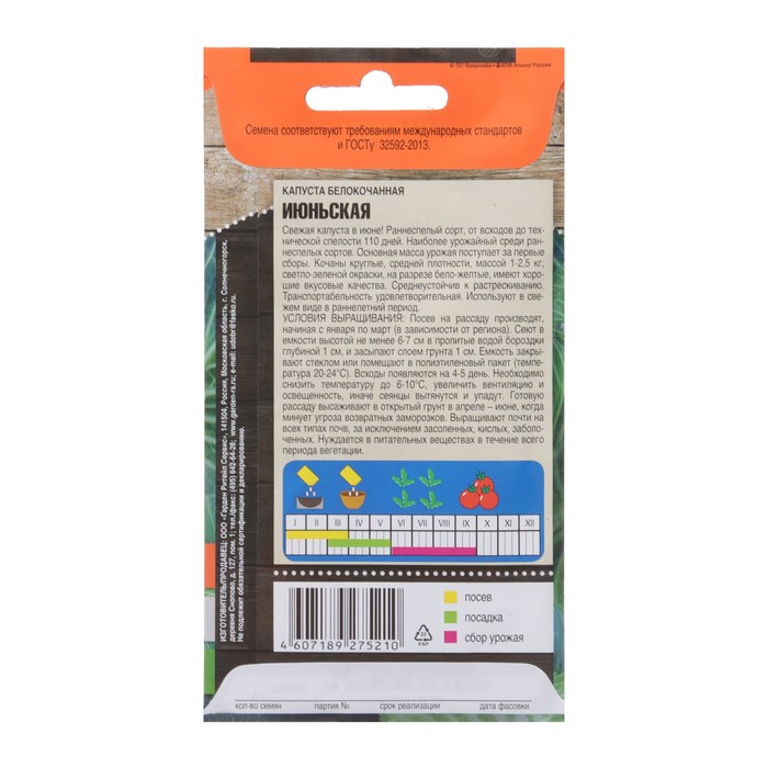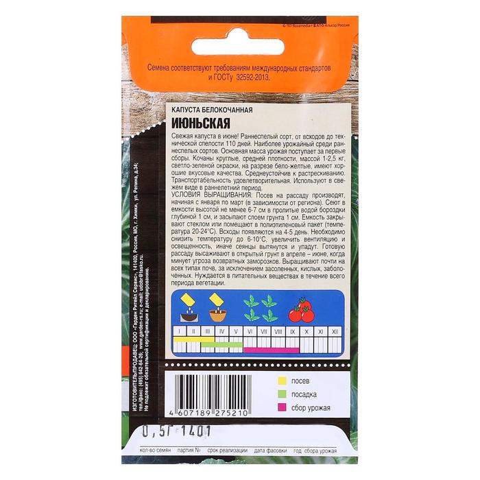 Семена Капуста белокочанная «Июньская», ранняя, 0.5 г, «Тимирязевский питомник»