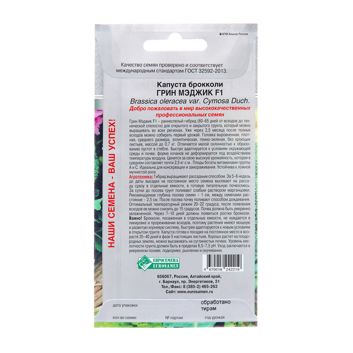Семена Капуста брокколи «Грин Мэджик», F1, 10 шт., «Евросемена»