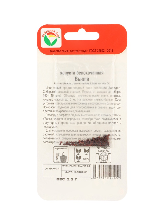 Семена Капусты белокочанной «Вьюга», 0.3 г, «Сибирский сад»