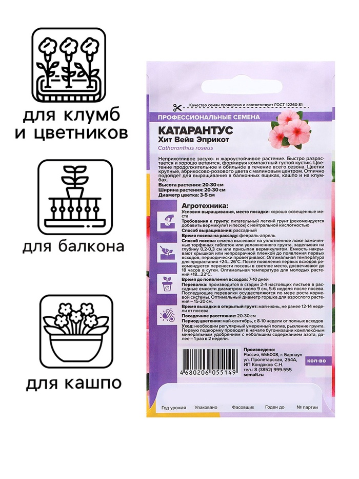 Семена Катарантус "Хит Вейв Эприкот", ц/п, 5 шт