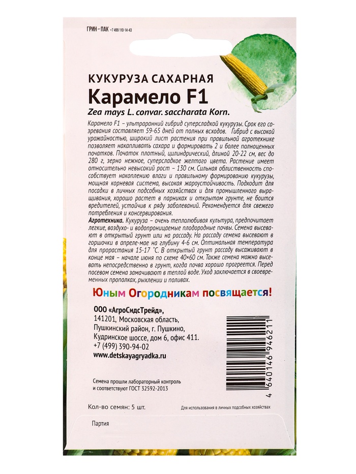 Семена Кукуруза КАРАМЕЛЛО 5шт Детская грядка