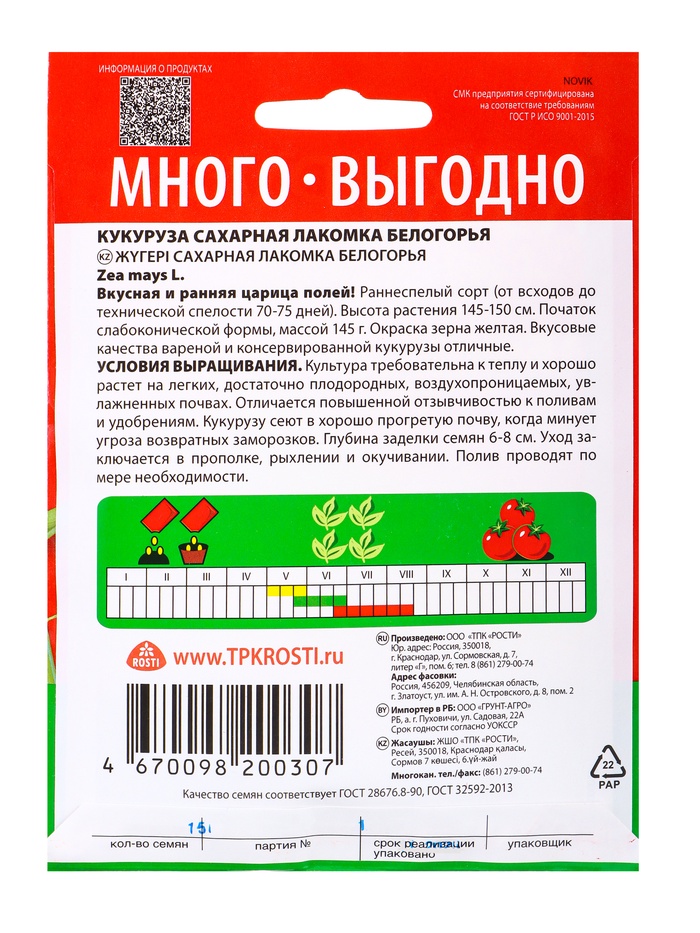 Семена Кукуруза Лакомка Белогорья Агроуспех Много-Выгодно 15г (50)
