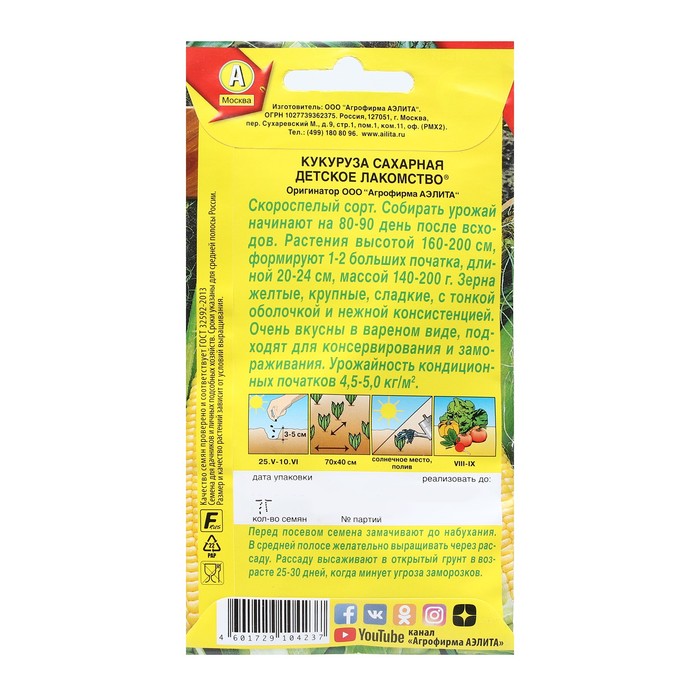 Семена Кукуруза сахарная «Детское лакомство», 7 г, «Аэлита»