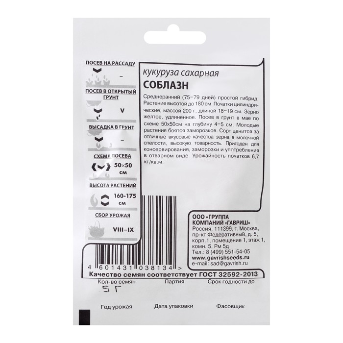 Семена Кукуруза сахарная «Соблазн», 5 г, «Гавриш»