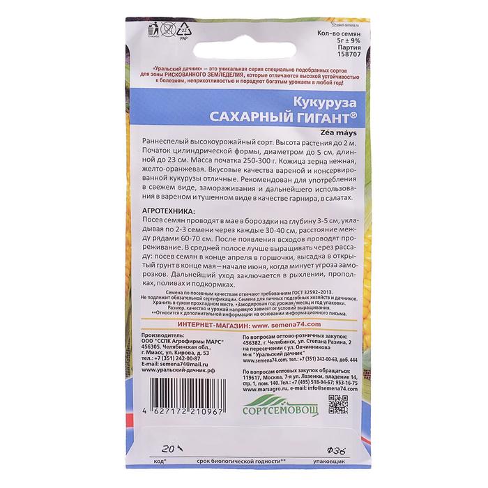 Семена Кукуруза "Сахарный Гигант", 5 г