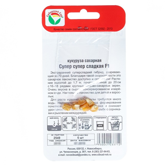 Семена Кукуруза "Супер Супер Сладкая", F1, 6 шт.