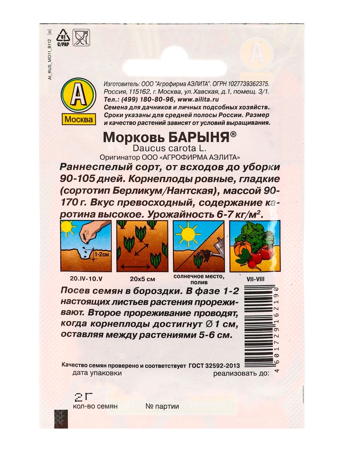Семена Морковь «Барыня», 2 г, «Аэлита»