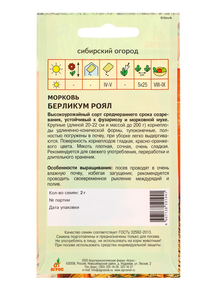 Семена Морковь«Берликум Роял», 2 г, «Агросс»