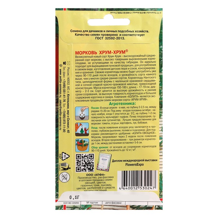 Семена Морковь "Хрум-Хрум", 0,5 г