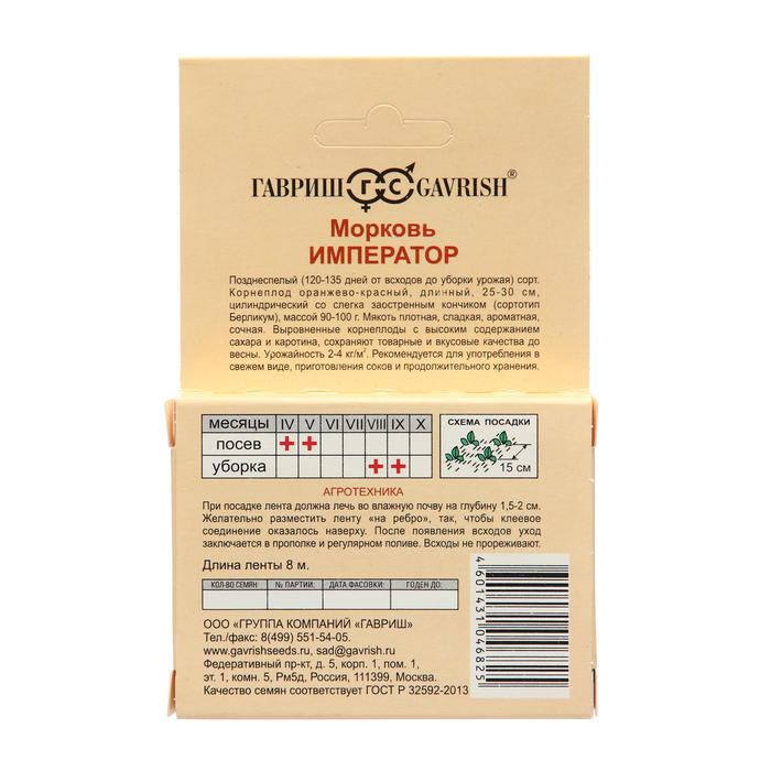 Семена Морковь на ленте "Император", 8 м