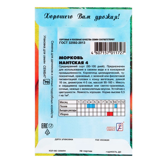 Семена Морковь «Нантская 4», 1 г, среднеспелая, «Сембат»