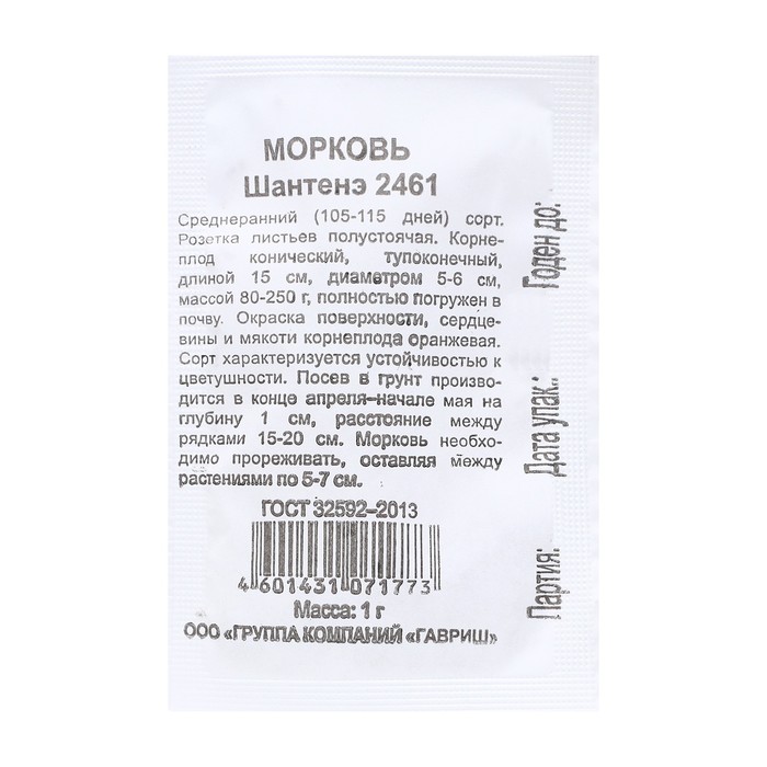 Семена Морковь «Шантенэ 2461», 1 г, «Удачные семена»