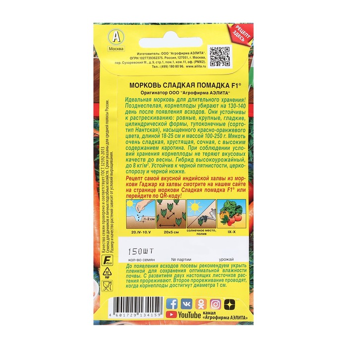 Семена Морковь "Сладкая помадка", F1, 150 шт