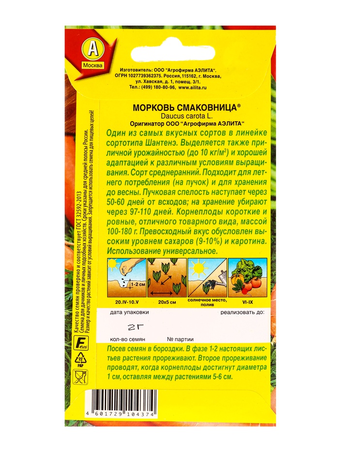 Семена Морковь «Смаковница», 2 г, «Аэлита»