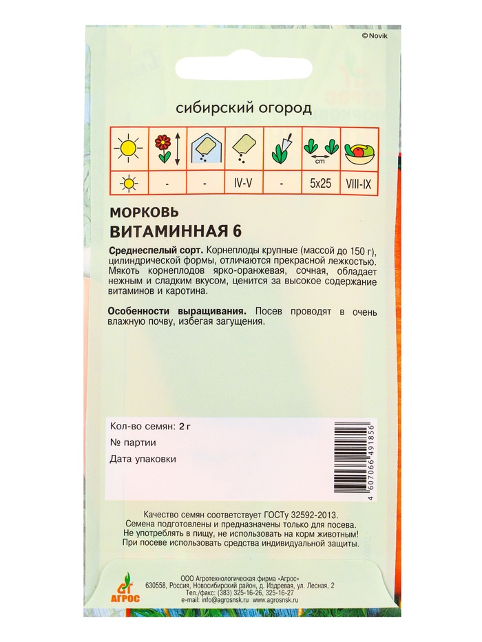 Семена Морковь «Витаминная 6», 2 г, «Агросс»