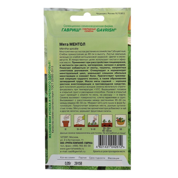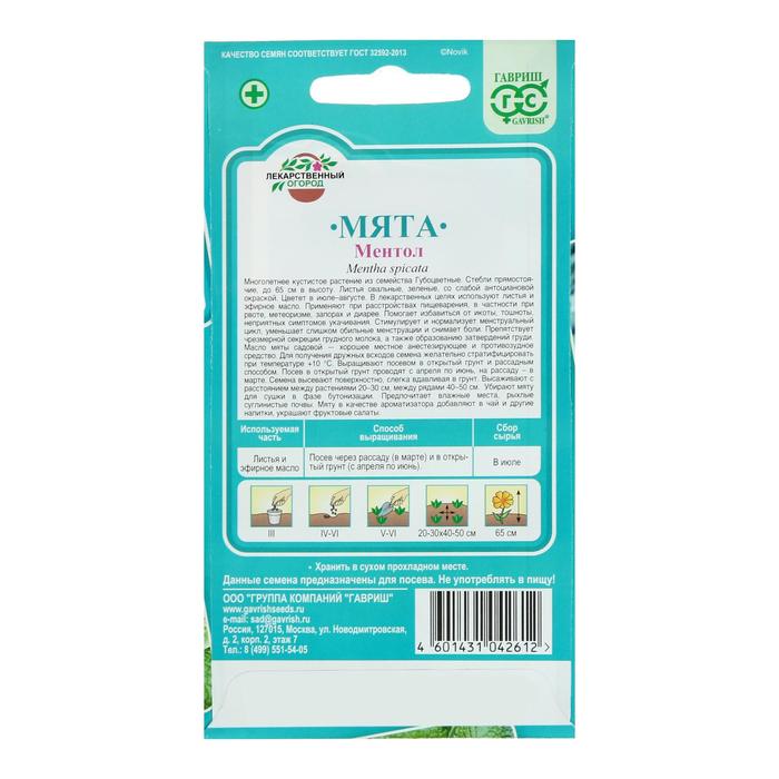 Семена Мята садовая "Ментол", ц/п, 0,05 г