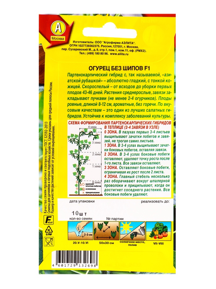 Семена Огурец «Без шипов», F1, партенокарпический, 10 шт., «Агрофирма АЭЛИТА»