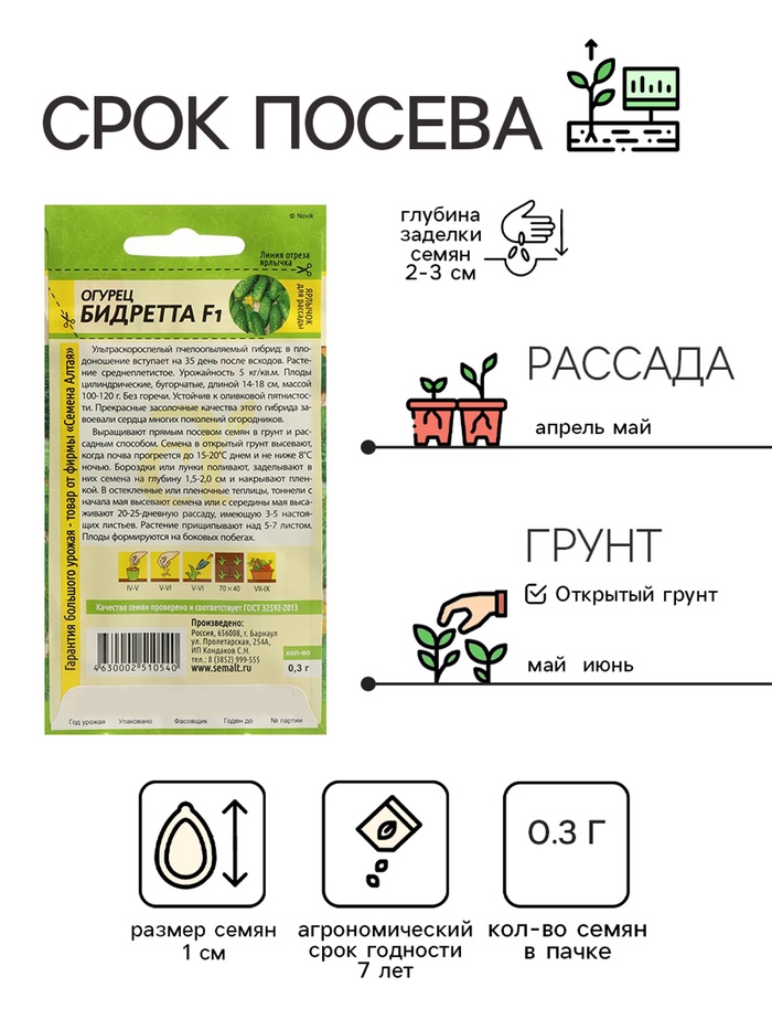 Семена Огурец "Бидретта", F1, Сем. Алт, ц/п, 0,3 г