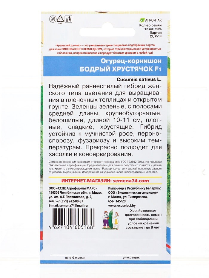 Семена Огурец Бодрый хрустячок - корнишон F1 (УД) Е/П , Е/П, 10 шт.