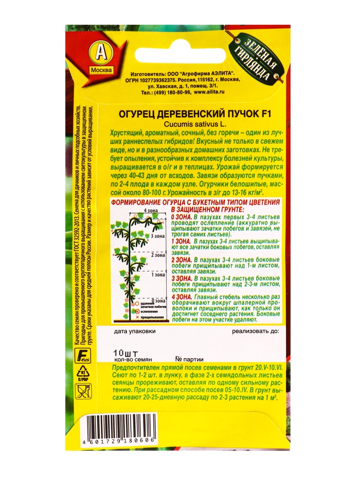 Семена Огурец «Деревенский пучок», F1, партенокарпический, «Зеленая гирлянда - Агрофирма АЭЛИТА», 10 шт.