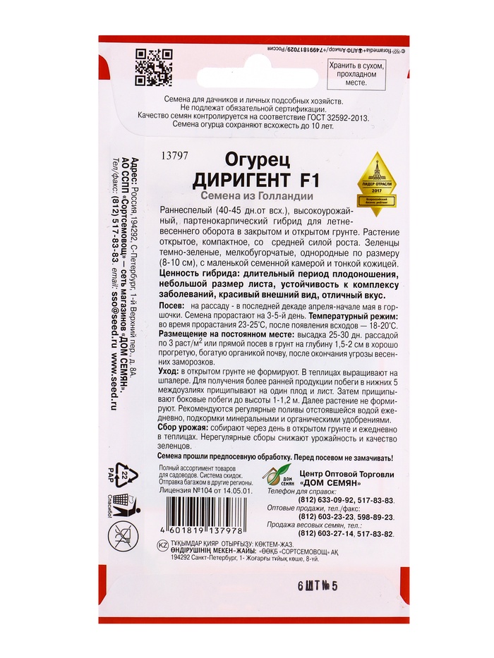Семена Огурец Диригент F1 6 шт