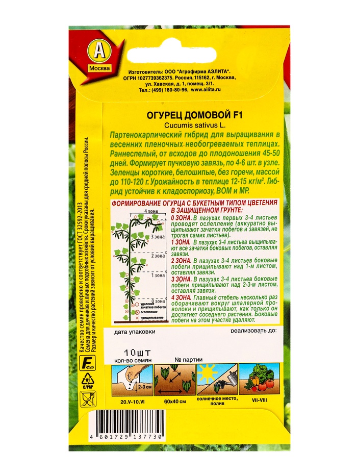 Семена Огурец «Домовой», F1, партенокарпический, 10 шт., «Агрофирма АЭЛИТА»