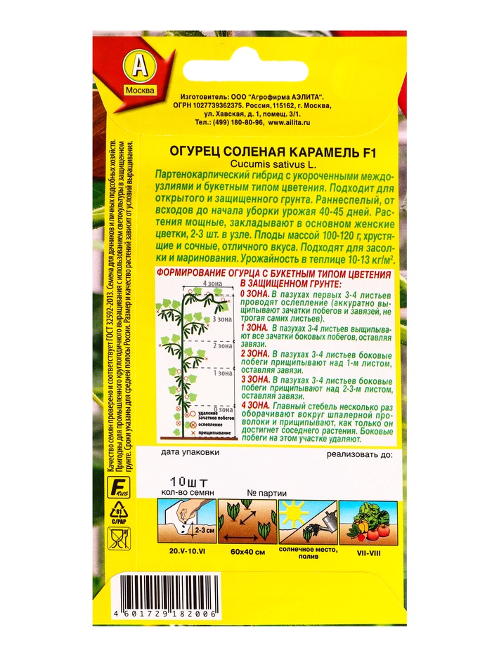 Семена Огурец «Соленая карамель», F1, партенокарпический, 10 шт., «Агрофирма АЭЛИТА»