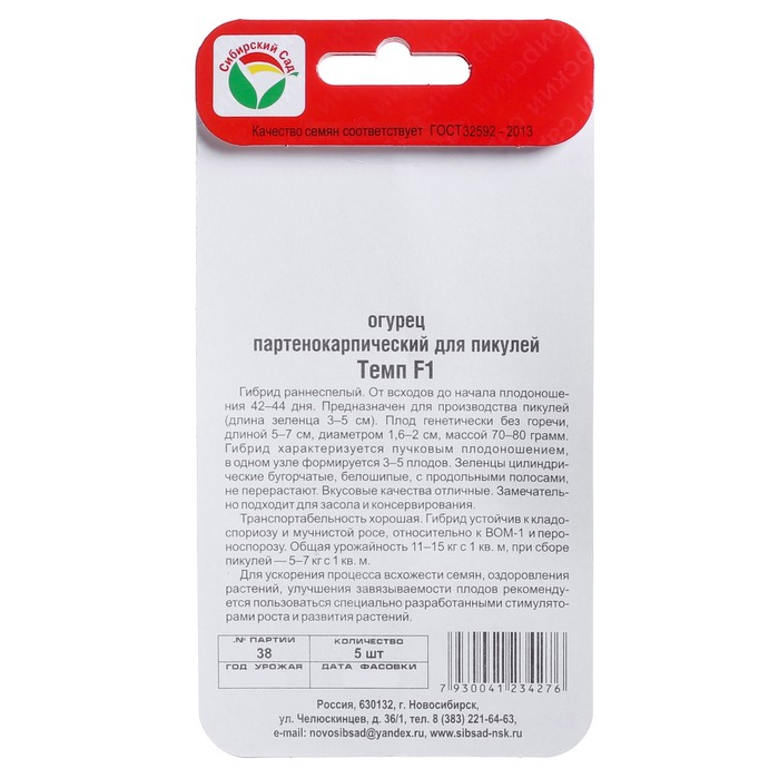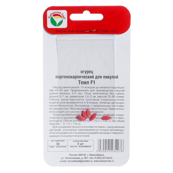 Семена Огурец Темп F1,партенокарпический, 5 шт