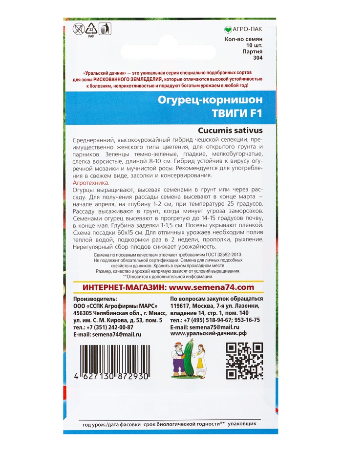 Семена Огурец Твиги - корнишон F1 10 шт.