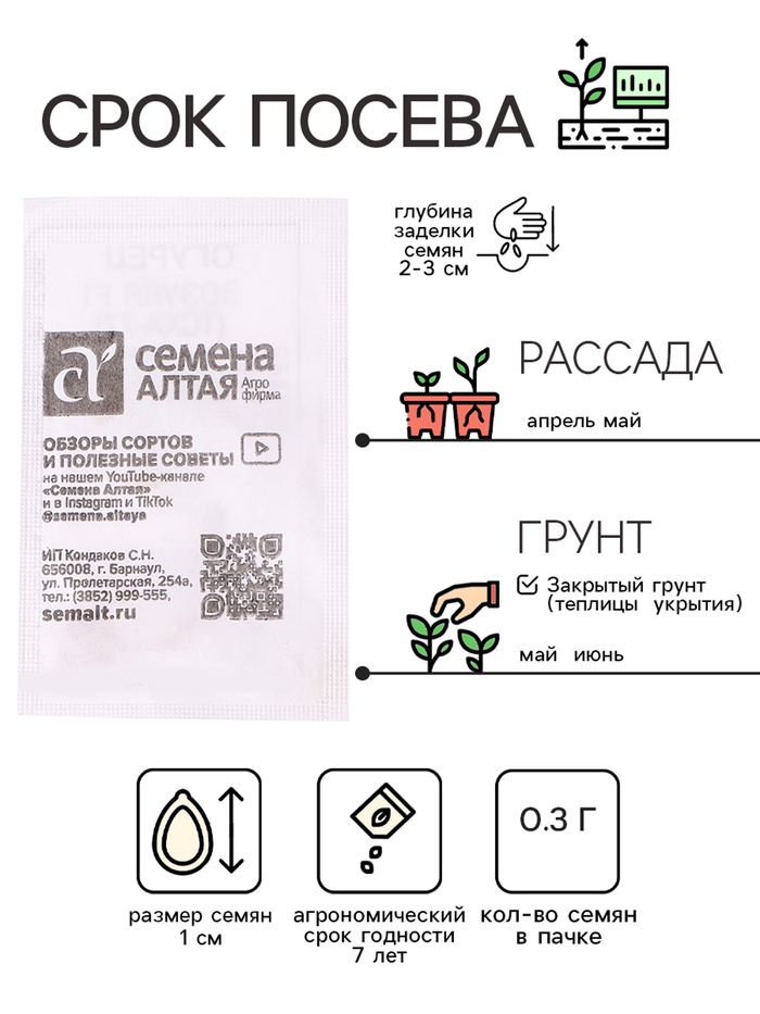 Семена Огурец "Зозуля", F1, (ТСХА 77), Сем. Алт, б/п, 0,3 г