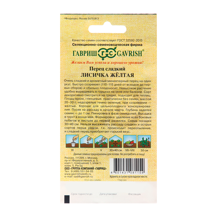 Семена Перец «Лисичка», жёлтая, 10 шт., «Гавриш»