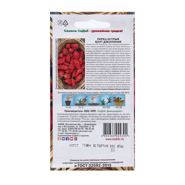 Семена перец острый "Бхут Джолокия Super hot " б/п 5шт