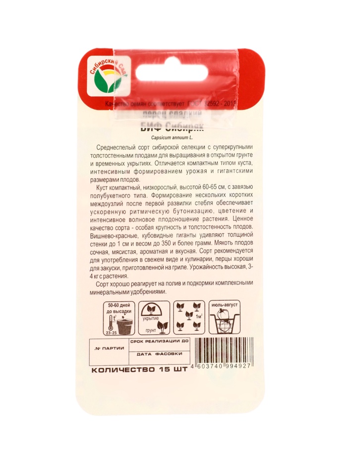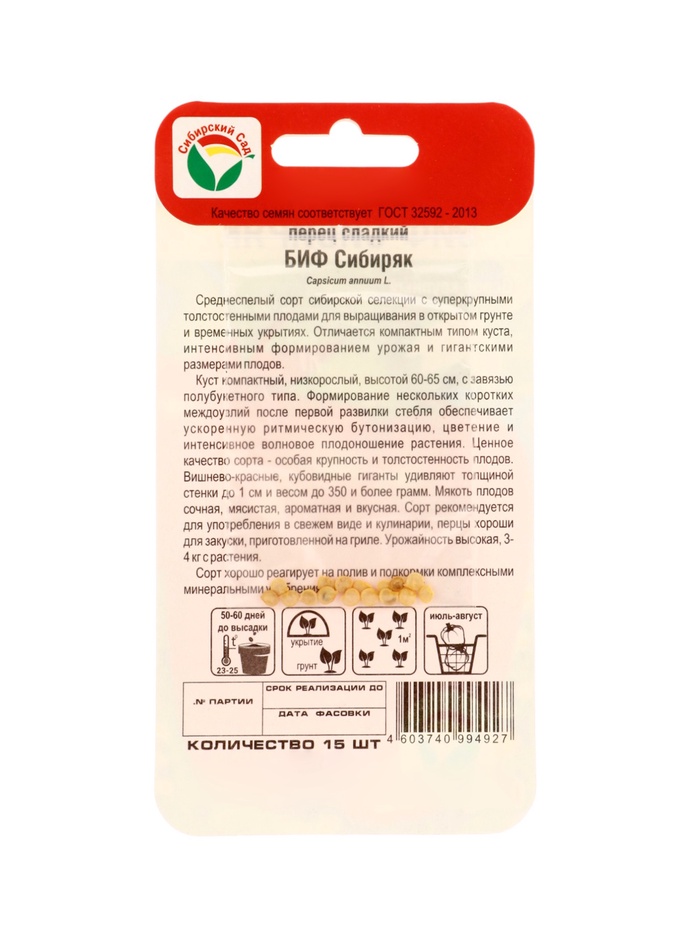 Семена Перец сладкий "БИФ-Сибиряк", 15 шт
