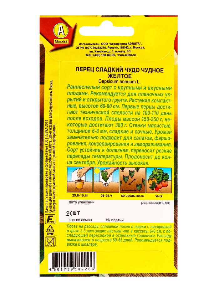 Семена Перец сладкий Чудо чудное желтое, Ц/П,20 шт.