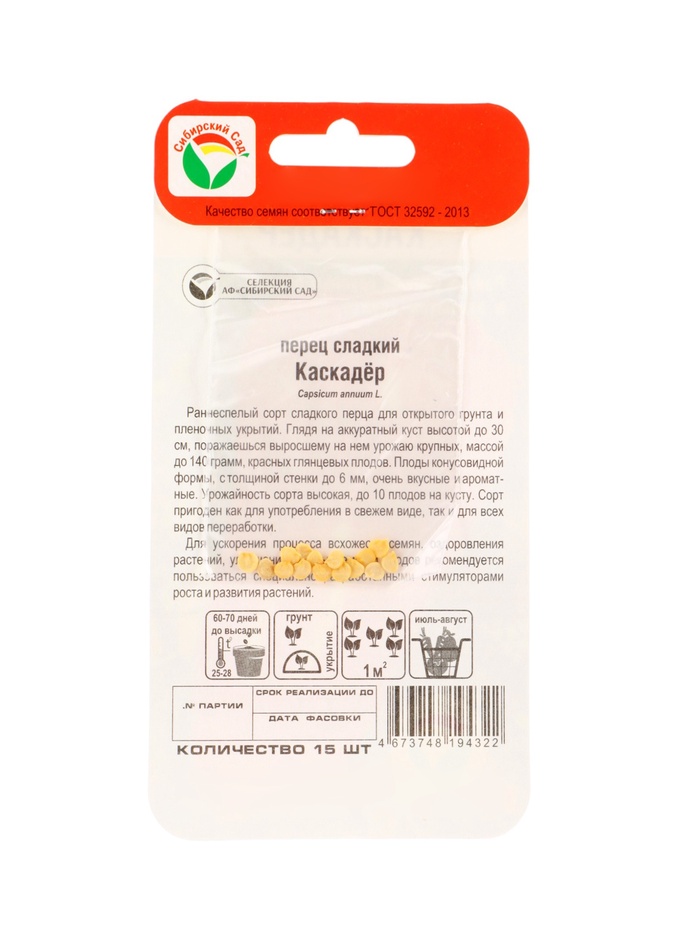Семена Перец сладкий "Каскадер", раннеспелый, 15 шт