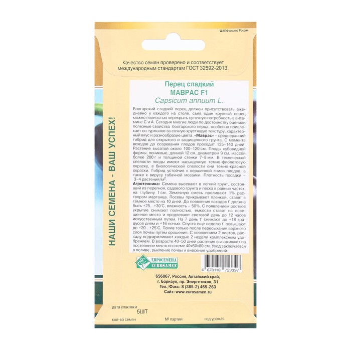 Семена Перец сладкий Маврас F1, 5 шт