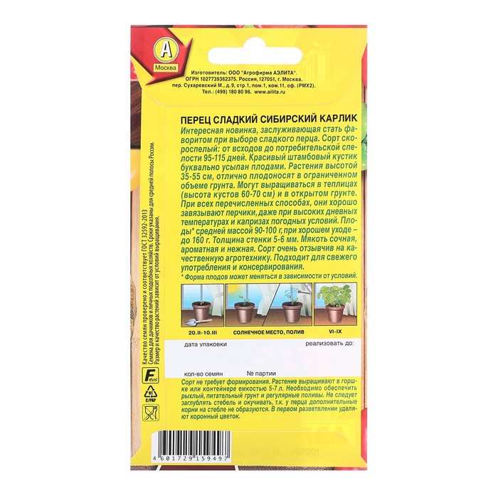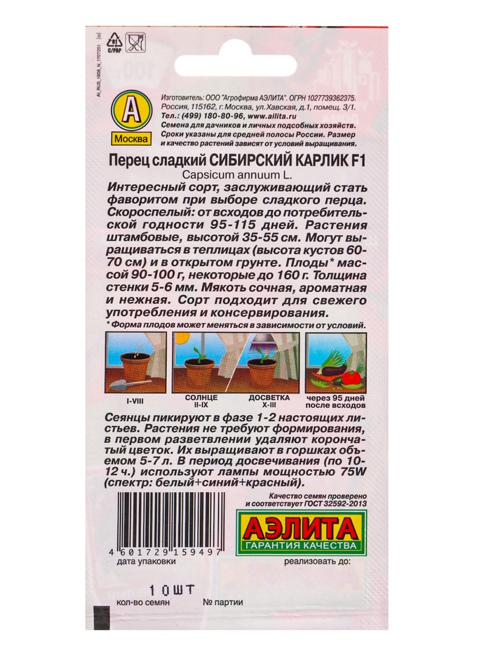 Семена Перец сладкий Сибирский карлик Урожай дома Ц/П 10шт