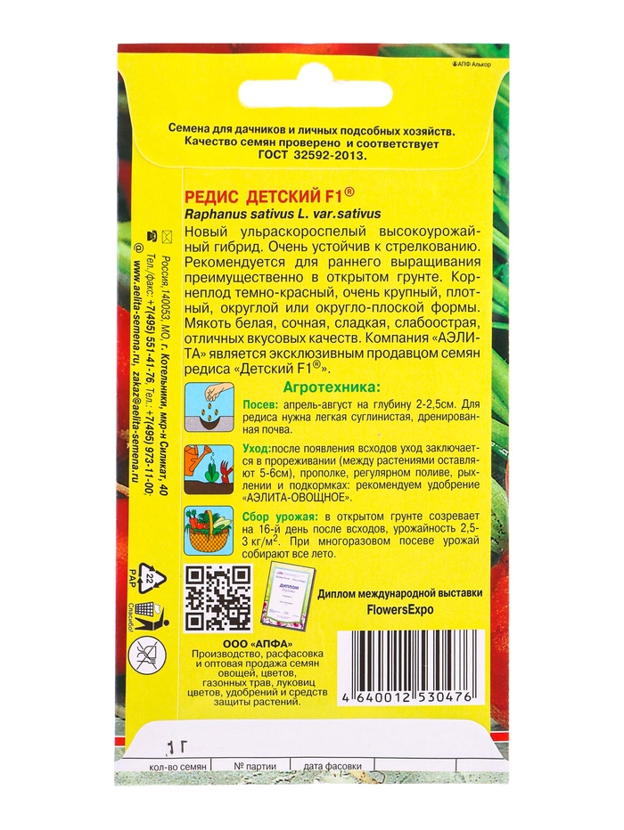 Семена Редис «Детский», F1, «Агрофирма АЭЛИТА», 1 г