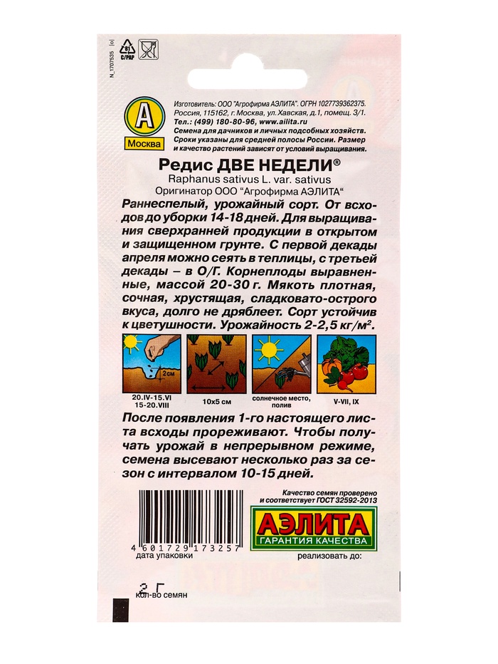 Семена Редис «Две недели», «Агрофирма АЭЛИТА», 2 г