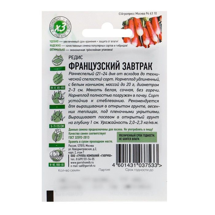 Семена Редис «Французский завтрак», 2 г, скороспелый, «Удачные семена»