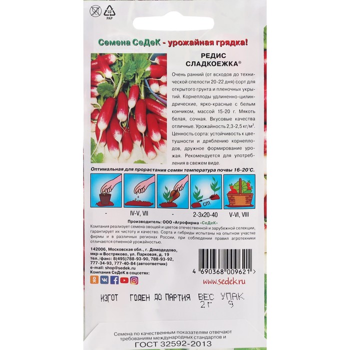 Семена Редис "Сладкоежка " 2 г