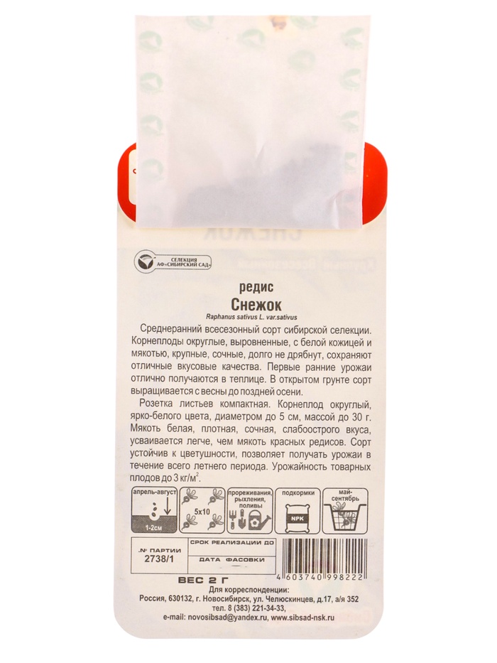 Семена Редис Снежок 2 г (Сибирский Сад)